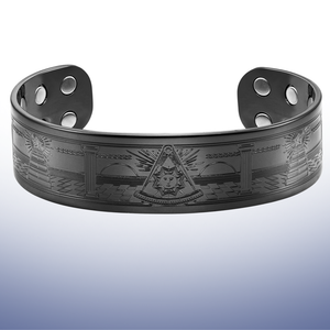 Meticulously crafted from 100% pure copper, this bangle celebrates the office of the Past Master, bearing the radiant Sun within the Square and Compasses, framed by the Pillars, Steps, and Checkerboard Floor — eternal Masonic symbols representing enlightenment, integrity, and the mastery of one’s path.